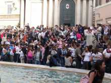 Foule et hystérie. Tous les touristes (ou presque) qui sont allés à Rome se sont rendus à la célébrissime Fontana di Trevi (un mot dérivé du latin trivium ou « trois rues »). Cette fontaine monumentale coincée dans une minuscule place du vieux Rome est un ensemble colossal de statues baroques du XVIIIème siècle, dominant un grand bassin aux eaux jaillissantes, adossé à un palais (le Palazzo Poli) et représentant des divinités et personnalités antiques. De grands réalisateurs de cinéma y ont tourné des scènes mémorables comme Fellini dans « La Dolce Vita » montrant Anita Eckberg s’y baignant en robe du soir.