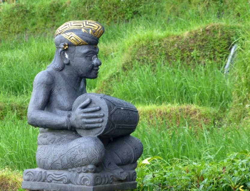 Je n’en ai vu qu’un tout petit échantillon, sur les terrasses de Tegallalang un peu au nord de la ville d’Ubud : des cascades de verts, encadrées de cocotiers et de forêts et qui renvoient des teintes différentes selon l’heure de la journée. L’irrigation de ces rizières est gérée par de savants réseaux hydrauliques et des coopératives de distribution très réglementées, les Sawah, qui m’ont fait penser aux levadas que j’avais visités dans l’île de Madère. Mais à Bali l’eau est en osmose étroite avec la religion hindoue et avec d’innombrables temples parmi lesquels des "temples d’eau". L’Unesco a classé dans son patrimoine mondial ces étonnantes rizières et le système socio-culturel auquel elles sont associées.