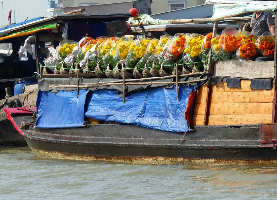 Dans ces marchés flottants et ces marchés terrestres, tout se vend, des draps, des machines à laver, des pièces détachées, des montagnes de pastèques ou de durians, des fleurs pour les fêtes et les autels des ancêtres, des légumes, du riz, du poisson, des crevettes,… Une des marchandises les plus visibles ce sont les bières, locales ou occidentales. La bière est la boisson le plus consommée des Vietnamiens, qui ne boivent pas de vin, mais plutôt de l’alcool de riz. Au restaurant, on apporte carrément un carton de bières dès qu'on s’assied !
