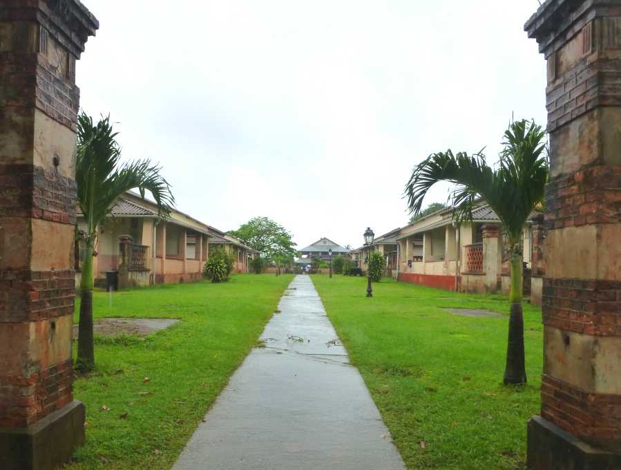 Quand j’ai mis le pied sur l’île Royale, la principale des trois (à côté de l’île Saint Joseph et de l’île du diable), ce qui m’a frappée, ce sont les importantes constructions On dirait une petite ville coloniale structurée : l’église, des rues et escaliers, des entrepôts, l’hôpital, le phare, les maisons des gardiens (aujourd’hui hébergements pour touristes), le pavillon du directeur, élégant comme une résidence secondaire en Normandie ou en Bretagne,… Mais un détail montre que la vie était dure pour tout le monde sous ces tropiques, c’est le cimetière des enfants… ceux des gardiens chez qui le taux de mortalité était exceptionnellement élevé.