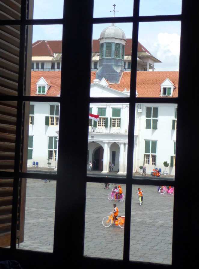 Les larges fenêtres du "grand salon" du premier étage dominent la vaste place Fatahillah juste en face du monumental ancien Stadthuis. Le bâtiment où je suis est un peu plus récent (210 ans seulement) que cet ancien hôtel de ville. Au départ, il servait à l’administration de la Compagnie hollandaise des Indes orientales. Ce n’est qu’en 1993 qu’il s’est mué en Café Batavia. J’ai retrouvé dans ses fauteuils cossus un peu du prestige élégamment suranné des palaces extrêmes orientaux comme le Raffles de Singapour, l’Eastern & Oriental de Penang en Malaisie ou le Strand de Yangoon. N'oublions pas que l'archipel indonésien a un pied dans l'Océan indien, l'autre dans le Pacifique, la tête en Asie, les pieds posés sur un bout d'Occident anglophone, l'Australie, des racines hindoues et bouddhistes, qu'il a connu un long intermède hollandais et a un cœur musulman... Pas étonnant que sa capitale Jakarta, si fébrile et démesurée, paraisse si cosmopolite.