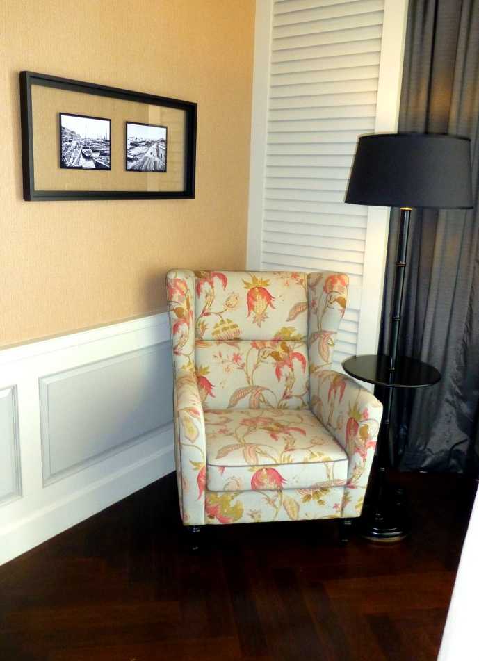 Car l’Eastern Oriental est un monument de l’hôtellerie internationale. En entrant dans ce bâtiment massif qu’on croirait sorti de Manhattan, j’ai été impressionnée par ses volumes, par le côté cossu de son lobby et par une déco opulente un brin pompeuse. Un luxe grandiose et inouï, mais tout en retenue, sans doute par éducation et correction … très aristocratie british. En attendant la disponibilité de ma chambre, on m’oriente dans une sorte de vaste salon de thé ("Planters lounge") où tout m’est offert à volonté. J’engloutis donc un high tea et ses étages de scones et de finger sandwiches. Sur le plancher de bois sombre un ballet continu de serveurs sert et dessert.