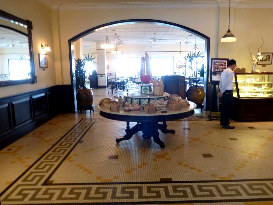 Naturellement, le restaurant de l’Eastern Oriental s’appelle "Sarkies". Je ne suis pas sûre que les riches et cultivés anglais et les chinois très "business executive" qui le fréquentent sachent de qui il s’agit. J’ai côtoyé ces privilégiés, portés par les vagues frénétiques du breakfast, quand tout ce beau monde affamé déboule sur les alignements de buffets rutilants et gargantuesques. Des armées de cuisiniers coiffés de toques rococo satisfont leurs exigences de grillades et plats composés, découpent des tranches de canard laqué et ajustent la cuisson des scrambled, poached, soft-boiled ou sunny-side up eggs… Je n’ai pas honte de dire que je me suis empiffrée.
