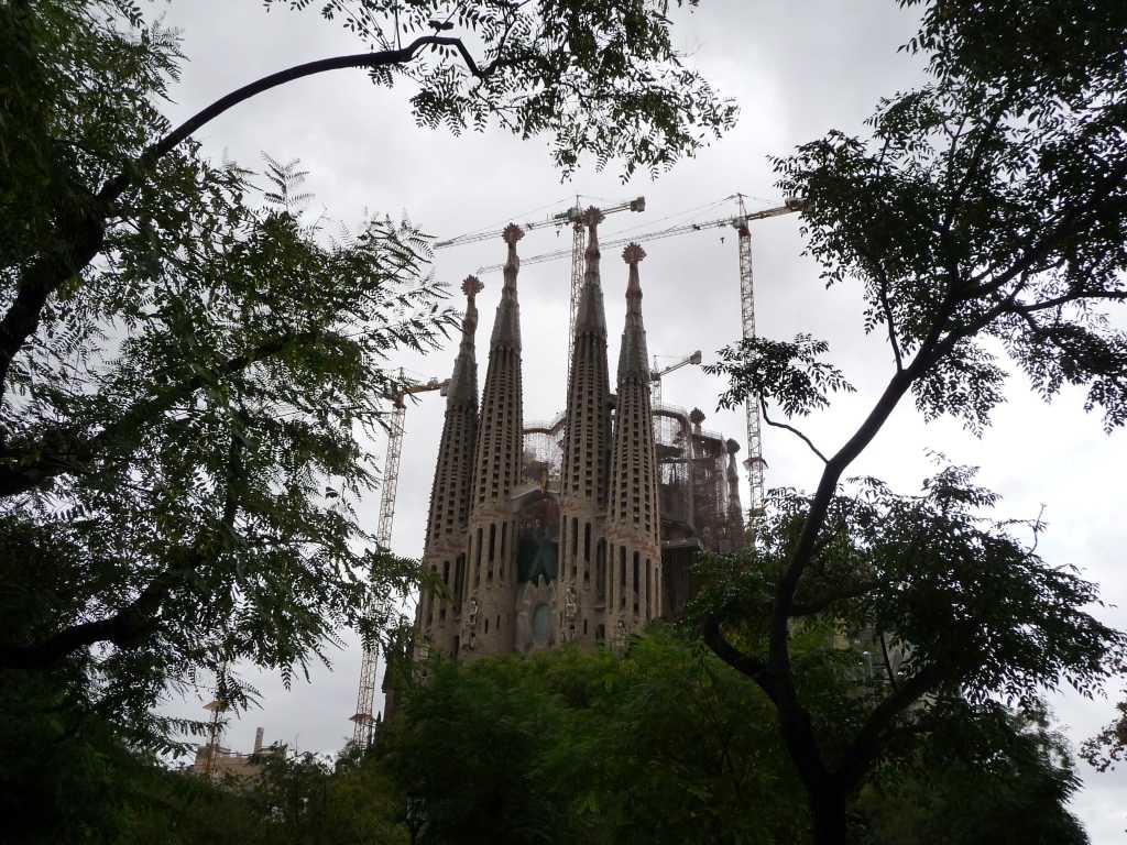 Certes la lumière n’était pas idéale pour faire des photos, mais j’ai pris le temps de lever le nez, malgré mon parapluie. J’ai mieux découvert le foisonnement des fantaisies d’Antoni Gaudi et de l’art nouveau catalan qui ont bourgeonné à travers la ville et sur ses immeubles. Bien sûr comme des millions de touristes, j’ai vu l’étrange Sagrada Familia, la folie de Gaudi toujours en construction plus de cent ans après le démarrage de ses travaux, classée au patrimoine mondial de l’humanité par l’Unesco. Cette basilique unique un peu inspirée des cathédrales médiévales dresse ses tours comme des troncs dont on attend le fleurissement.