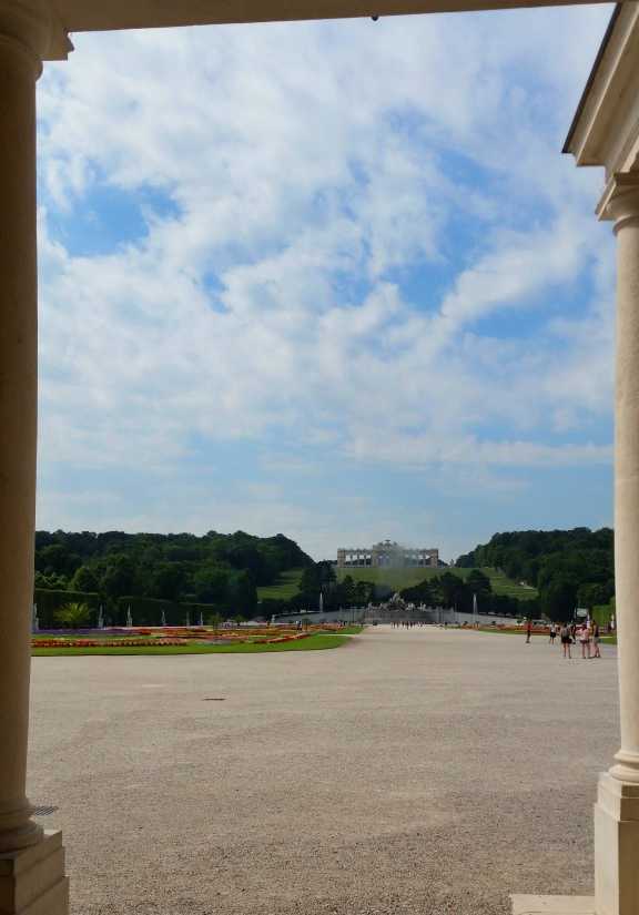 Ce qui m’a frappée à Schönbrunn, c’est l’immensité des jardins. Schönbrunn ("belle fontaine") est planté au milieu d’immenses pelouses et arbres fleuris dessinées à la française sur 200 hectares, parsemés de fontaines et de statues. Les germanophones parlent de Gesamtkunstwerk, pour une œuvre d’art totale, comme Schönbrunn qui intègre aussi bien l’architecture que le mobilier intérieur et extérieur, la statuaire et les jardins. En revanche à l’intérieur, je n’ai pas aimé l’interdiction de prendre des photos. De quoi les conservateurs du lieu ont-ils peur ? Je me suis contentée de photos de l'extérieur. Mais comme beaucoup de visiteurs titillés par l’interdit, j’ai réussi à chiper quelques clichés, forcément un peu flous, dans les salons. En référence à la rebelle et inoumise Sissi qui aurait fait la même chose !