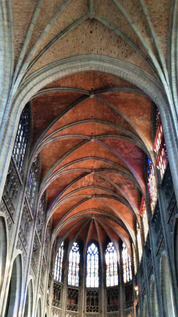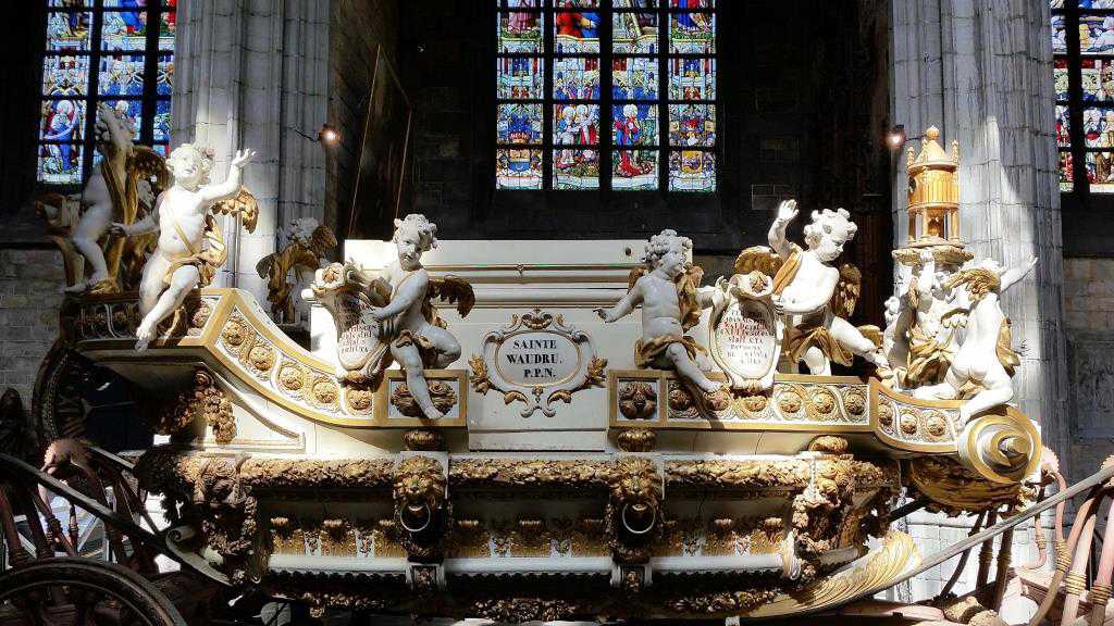 Partout, j’ai été impressionnée par la densité des arts et des lieux culturels de cette ville de Mons dont j’ignorais tout. Un de ses hauts lieux qui domine la cité est son beffroi (aussi au patrimoine mondial de l’Unesco). Il a la particularité rare d’être de style baroque. En haut de ses 87 mètres, il abrite un carillon de 49 cloches. Un peu en-dessous de ce beffroi, je n’ai pas manqué la collégiale gothique de Sainte Waudru, impressionnante par sa luminosité et ses richesses. Les moniales qui l’avaient fait construire aux XV et XVIème siècles avaient prévu de la couronner par une tour de … 190 m de haut… une folie qui n’a jamais pu être réalisée ! Les moniales avaient sans doute oublié de relire dans la Bible l’histoire de la tour de Babel !