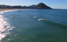 Derrière le quartier de Gros est un étalage d’architectures de toutes formes et styles du XXème siècle : de l’art déco du style Miami, du classico-classique… On pourrait se croire à Paris, Berlin ou Madrid, s’il n’y avait les inscriptions et panneaux en basque ainsi que la mer et la plage à côté. J’ai précisément longé la plage. Il y n’avait ce jour-là que de timides vaguelettes. Mais des grappes de surfeurs débutants s’accrochaient à leur planche.